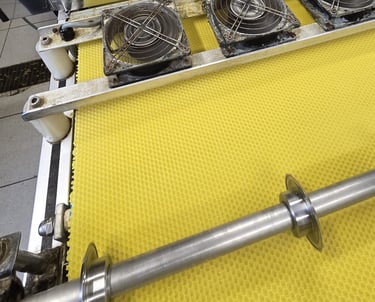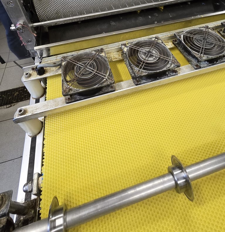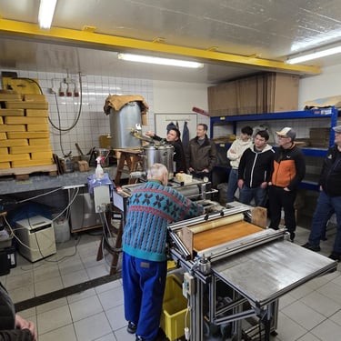 Nach der theoretischen Einführung konnten wir die Wachsverarbeitung auch in der Praxis miterleben. Wir durften live dabei sein, wie aus eingeschmolzenem und gereinigtem Altwachs neue Mittelwände hergestellt wurden. Das war sehr eindrücklich und lehrreich.