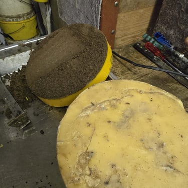 Nach einer kurzen Vorstellungsrunde wurden uns die notwendigen Schritte der Wachsverarbeitung ausführlich erklärt. Dabei lernten wir verschiedene Methoden und Geräte kennen, die man zum Einschmelzen von Altwaben oder Altwachs verwenden kann. Besonders wichtig war der Hinweis, worauf man in diesem Arbeitsschritt achten muss, um die Qualität des Wachses nicht zu beeinträchtigen.