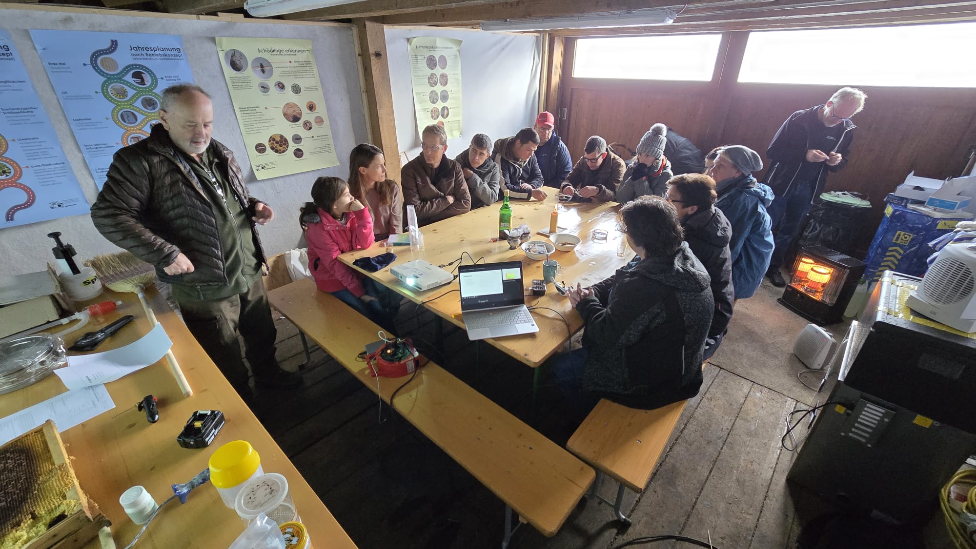Leider meinte es das Wetter an diesem Tag nicht gut mit uns – der erste Besuch bei den Bienen musste aufgrund der kühlen Temperaturen und schlechten Bedingungen verschoben werden. Unsere Kursleiter reagierten jedoch flexibel und stellten das Programm kurzerhand um. So starteten wir mit einem weiteren Theorieblock in den Kurstag.