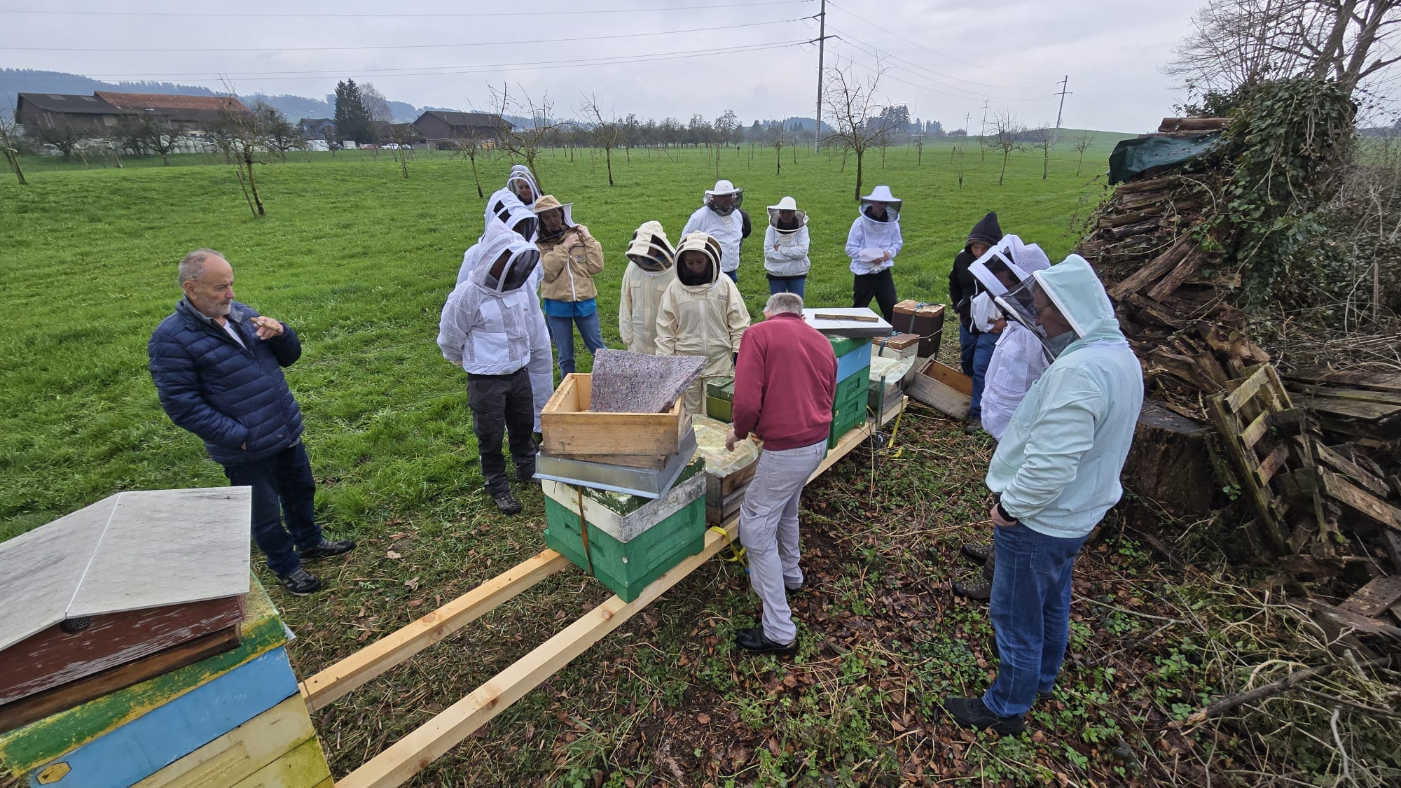 Ein besonders wichtiger Teil des Tages war das Thema „Erste Hilfe am Bienenstand“. Wir lernten, wie man potenzielle Gefahren erkennt und welche Massnahmen im Notfall zu ergreifen sind. Es wurde erklärt, worauf man besonders achten muss und wie man sich im Ernstfall korrekt verhält.