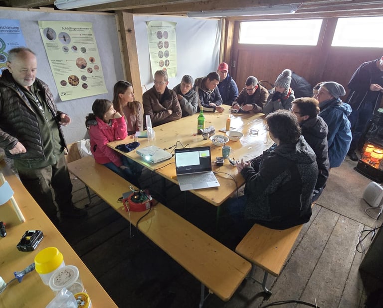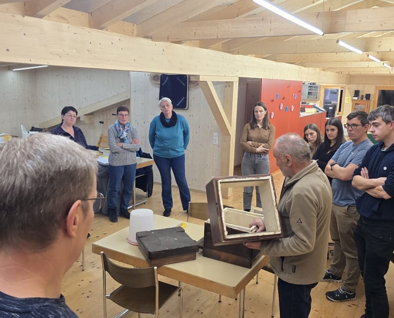 Unser erster Theorieabend im Imkerkurs war sehr spannend und lehrreich. Die beiden Kursleiter gaben uns einen umfassenden Einblick in die vielfältigen Aspekte der Imkerei. Besonders interessant war die Vorstellung der unterschiedlichen Beutensysteme und Betriebsweisen. Mithilfe von Musterbeuten konnten wir die verschiedenen Systeme nicht nur sehen, sondern auch anfassen und ausprobieren. So bekamen wir ein gutes Gefühl dafür, wie sich die einzelnen Systemen in der Praxis unterscheiden. Die jeweiligen Vor- und Nachteile wurden dabei sehr anschaulich erklärt. Darüber hinaus erhielten wir viele wertvolle Tipps rund um die Anschaffung von Ausrüstung. Worauf muss man beim Kauf achten? Was ist wirklich notwendig für den Start? Diese Fragen wurden uns klar beantwortet. Wir wissen nun, welche Dinge wir bis zum Kursstart unbedingt besorgen sollten – und was bis zum nächsten Kurstag angeschafft werden muss. Ein besonders spannender Ausblick: Beim nächsten Mal werden wir zum ersten Mal direkt mit den Bienen arbeiten. Damit dieser praktische Teil stattfinden kann, hoffen wir natürlich auf gutes Wetter mit ausreichend warmen Temperaturen. Die Vorfreude in der Gruppe ist auf jeden Fall schon gross, wir können es kaum erwarten, die Bienen aus nächster Nähe zu erleben!