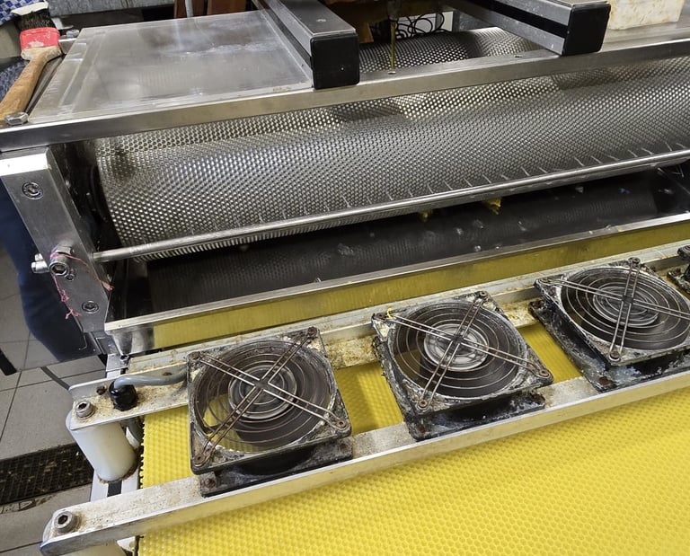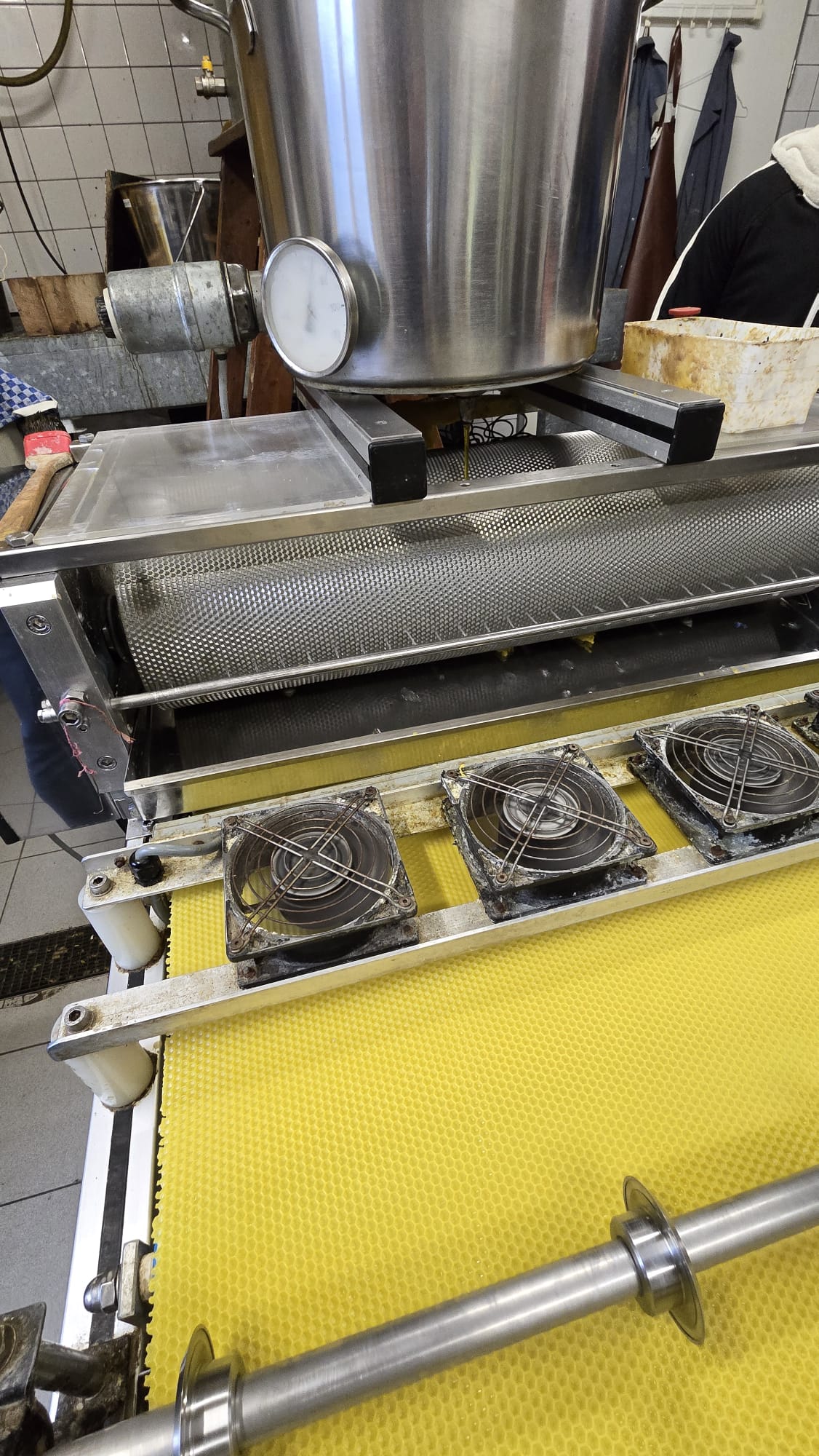 Nach der theoretischen Einführung konnten wir die Wachsverarbeitung auch in der Praxis miterleben. Wir durften live dabei sein, wie aus eingeschmolzenem und gereinigtem Altwachs neue Mittelwände hergestellt wurden. Das war sehr eindrücklich und lehrreich.